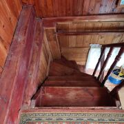 На втором этаже небольшой коридор и жилая комната с дверью. Пол черновая доска, покрытая ДВП. Потолок ДВП. Стены оклеены обоями. В коридоре по краям зоны для хранения.