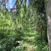 Земельный участок – 0,0767 соток граничит с лесом.