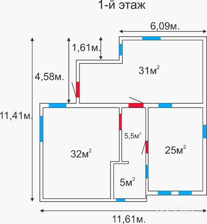 Общая площадь составляет 170 м2.