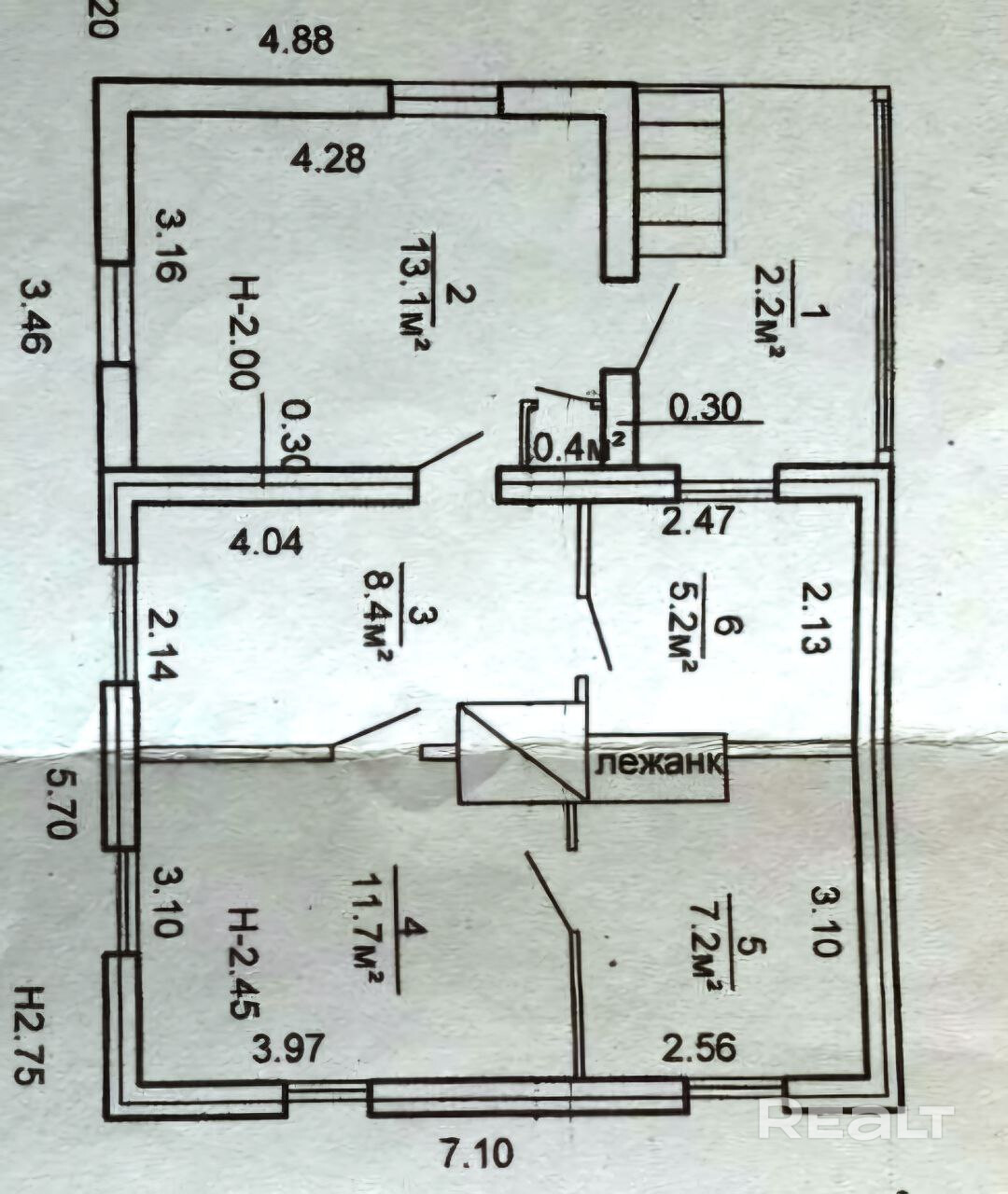 Под домом расположено помещение под гараж или для хоз. инвентаря площадью 32.4 кв.м.