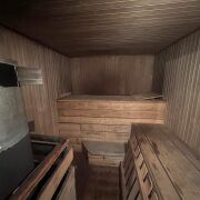 На первом этаже 2 комнаты, сауна, душевая кабина, бойлер, стиральная машина.