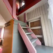 На втором этаже пол покрыт ДВП, стены и потолок оклеены обоями. Есть выход на балкон. По бокам сделаны ниши для хранения.