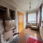 На первом этаже дома расположены веранда-кухня, 2 жилые комнаты, печь, лестница на второй этаж.