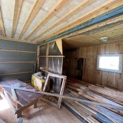 Дом в 2 уровня. Верхняя комната 22 кв.м. Фундамент - цельная платформа с верхним покрытием гидроизолом. Весь дом (стены, полы, потолки) покрыты утеплителем 10см с пара гидроизоляцией. Окна - стеклопакеты. Асфальтированная дорога до самого дома. Окна ПВХ, полы дощатые. Домик не достроен. Материалы закуплены. Необходима внутренняя отделка дома. Строили для себя. Очень качественно и надежно.