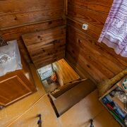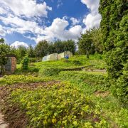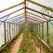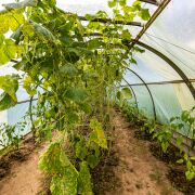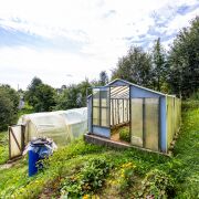 Земля разработана. Разноуровневый рельеф. Есть две стационарные теплицы.