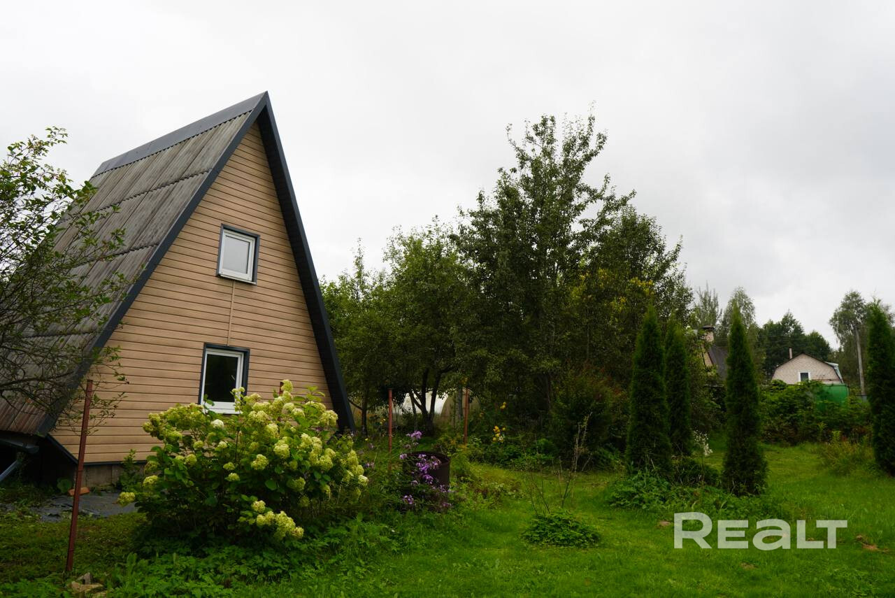 Продаётся уютная дача (A-frame дом 50 м², два этажа) на просторном участке 13 соток у леса, Смолевичский район (30 минут на авто до метро «Восток» по Московской трассе). Домик прочный, сухой, с печкой, электричеством, летней кухней и просторной беседкой (каркас). Санузел — химический на улице. Вода — скважина, работает насос, электричество проведено профессионально. На участке: плодовые деревья (несколько видов яблонь, груш,сливы), ягоды, теплица, сарай с двумя помещениями, автостоянка.