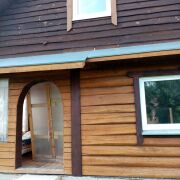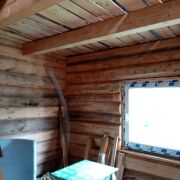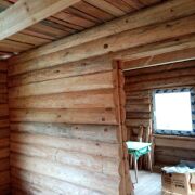 Дом бревенчатый, полы черновые, окна ПВХ, электрический кабель заведён в дом, вода сезонная на участке, счётчик вынесен по новым правилам, требуется внутрення отделка. Крыша высокая под мансарду, высота потолка до 2,2м. В наличии остатки пиломатериалов, кирпич для печки, заготовки труб. Городской автобус до ворот товарищества. СТ расположено в лесу, рядом озеро Каменка (база Беларусьфильма). В СТ организован вывоз мусора, есть беседка, волейбольная площадка.
