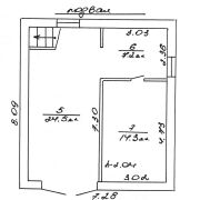 На первом этаже прихожая, кухня и две комнаты, выходы в подвал и на мансардный этаж, печь. На мансардном этаже большая комната с двумя окнами.