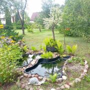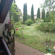 Участок в частной собственности имеет два выхода. Ухоженный газон, озеленение, цветники, плодовые деревья, ягодные кустарники. Качели. Теплица. Шатер. Выполнено ограждение по периметру, есть парковочное место на территории для удобства автолюбителе.
