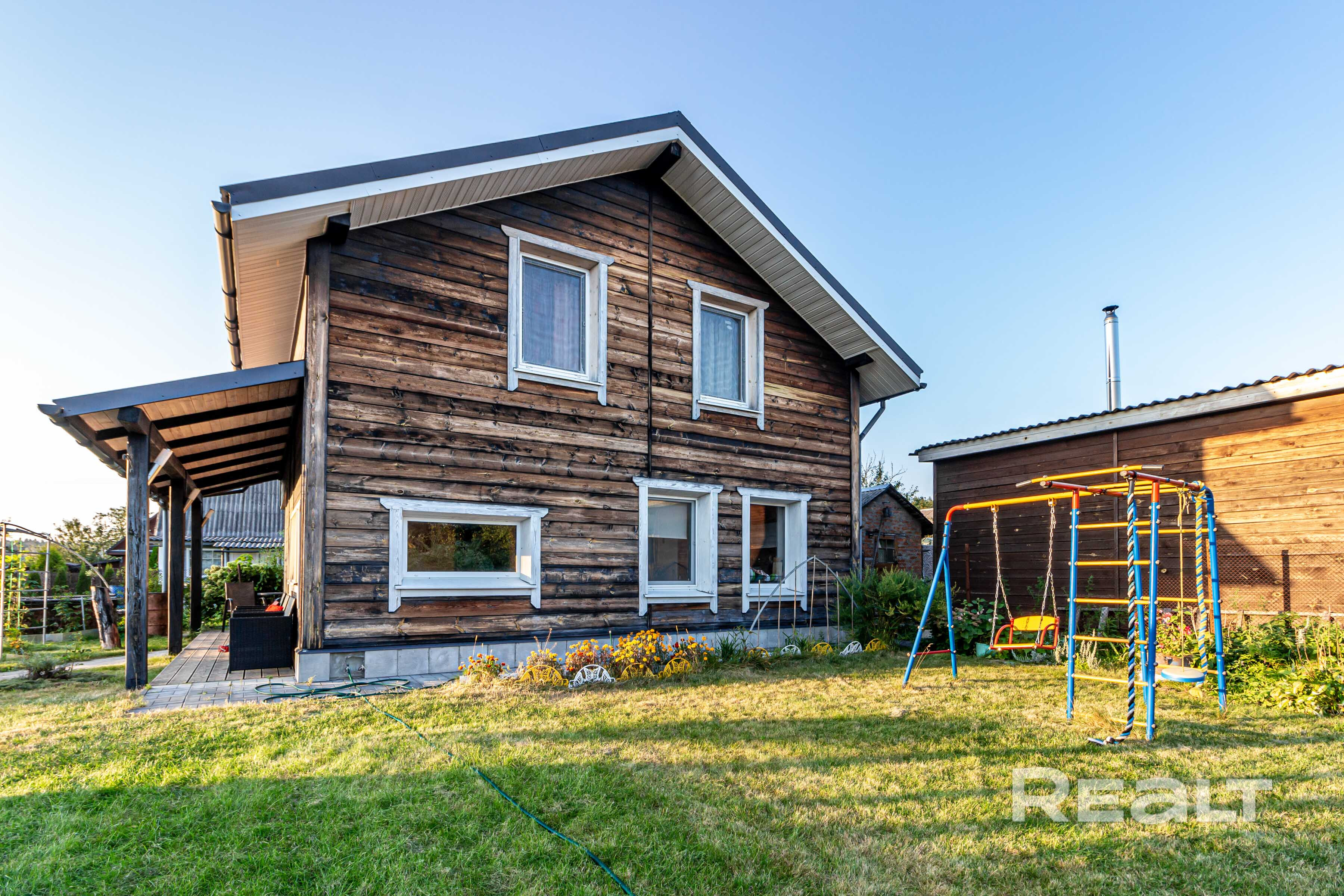 Уютный каркасный дачный дом в СТ «Голубой Факел», всего в 15 км от Минска (Московское направление) 2-ая линия Продаётся тёплый и уютный дом площадью 82,5 м², расположенный в живописном месте, в окружении лесов и чистого воздуха. Вокруг — настоящая природная идиллия: густые леса, тихая река, а также рядом находятся биологический заказник «Глебкова» и популярный «Хаскипарк» — отличные места для прогулок и активного отдыха на свежем воздухе.