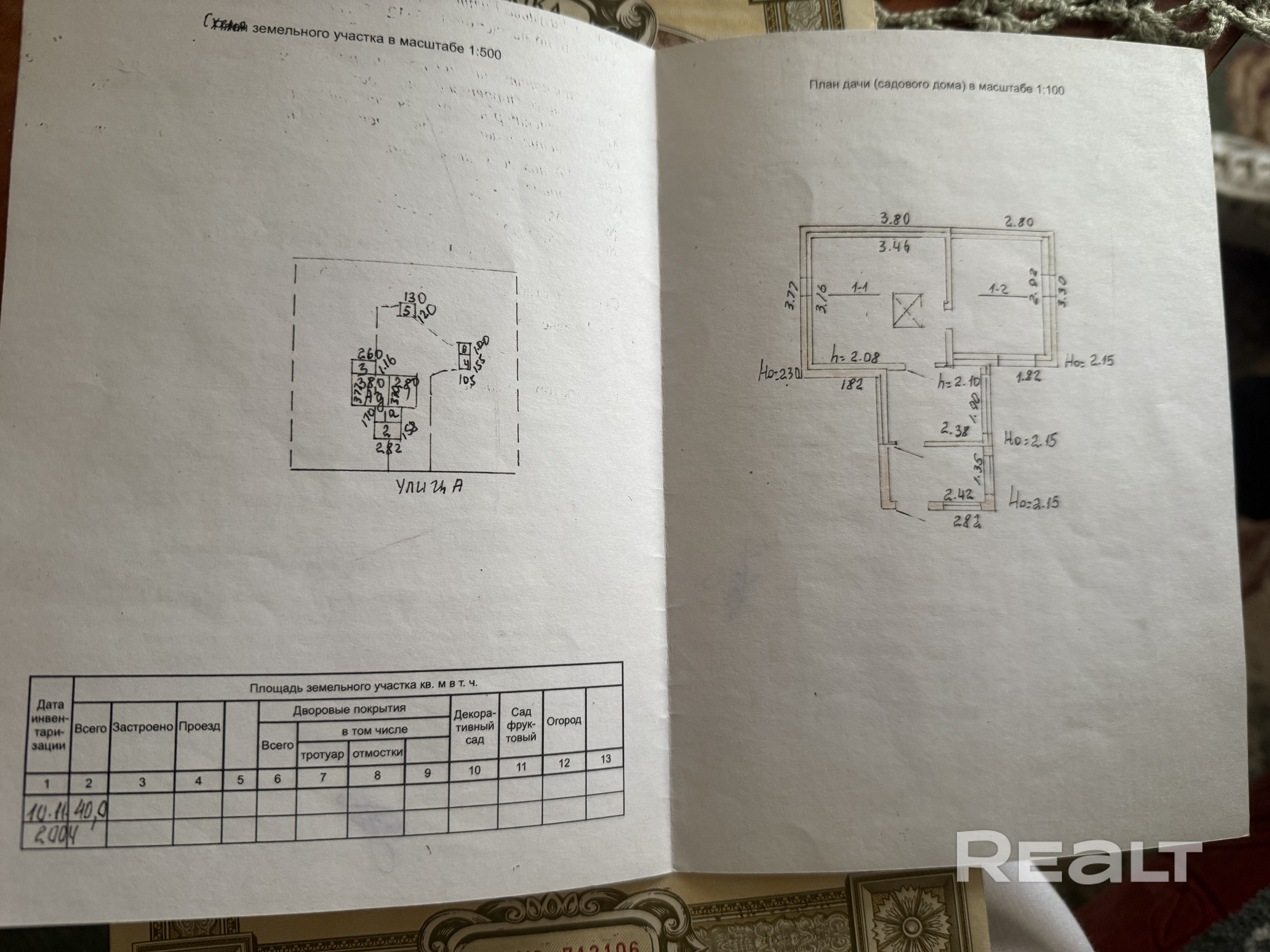 - Площадь участка