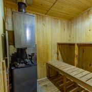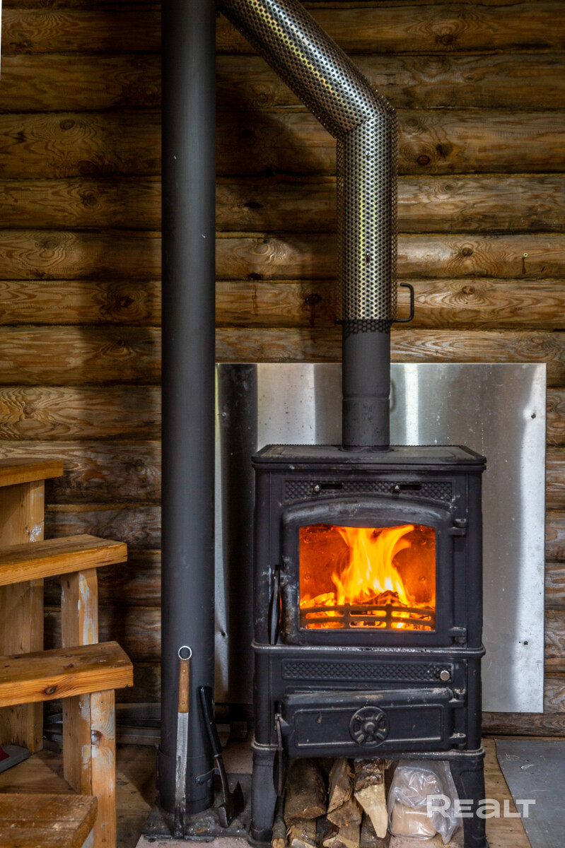 Печь-камин прогревает весь дом, можно использовать круглогодично.