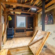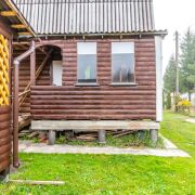 Построен из бревна, фундамент свайный.