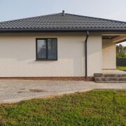 - Дом одноэтажный 86,9 кв.м, удобная планировка: просторная кухня - гостиная 24,8 кв.м с выходом на открытую террасу; 3 жилые комнаты - 11,6 кв.м/ 11,6 кв.м/ 11,8 кв.м; совмещенный санузел с душевой 4,4 кв.м; гардеробная - кладовка 1,5 кв.м; входная группа, топочная. В каждой из комнат предусмотрена система для хранения.