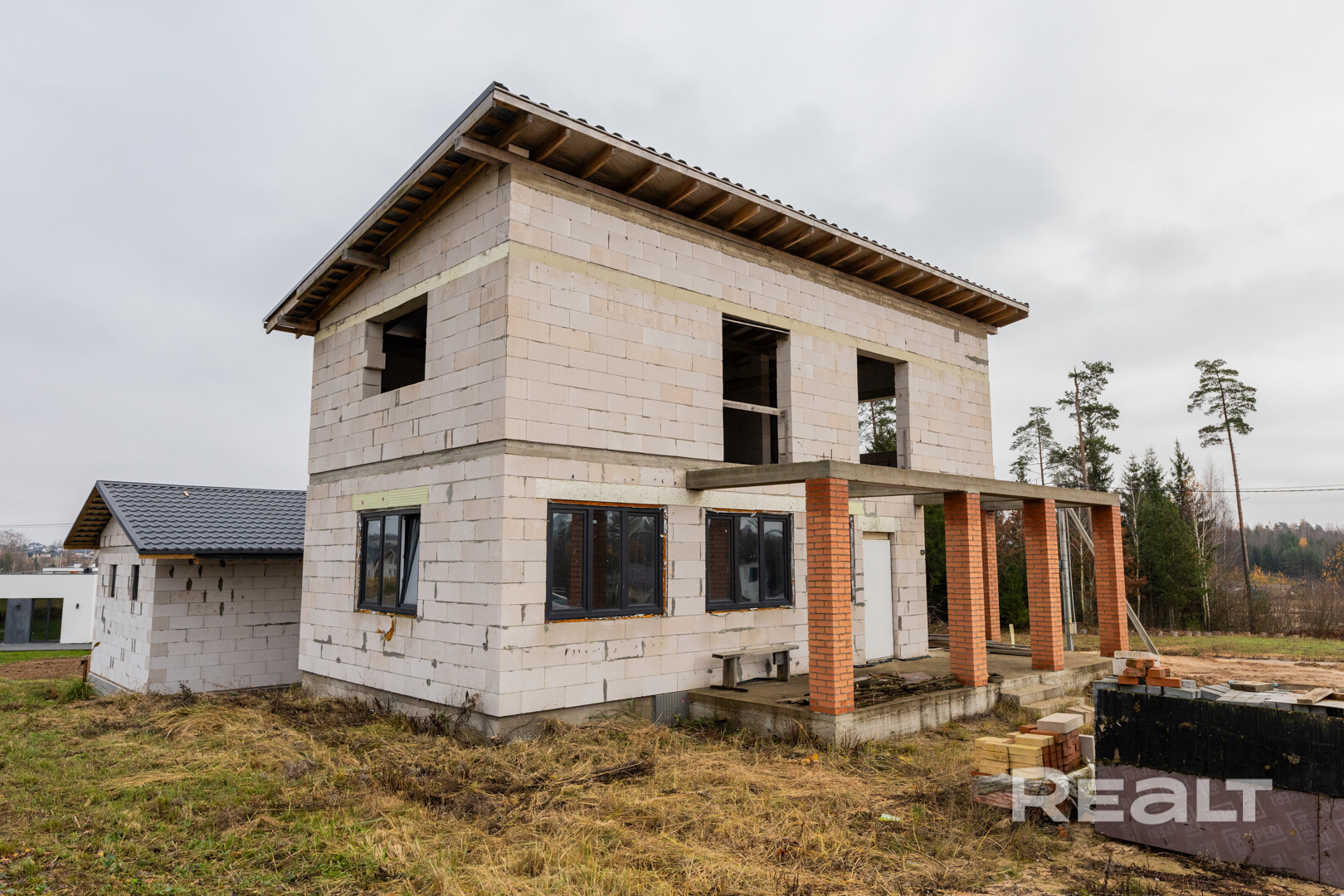 Представляем вам редкий объект с высоким потенциалом – недостроенный современный дом 126 м2 на участке 10 соток в одном из самых перспективных и комфортных коттеджных поселков пригорода Минска – СТ «Стрелец-2014», всего 17 км от города по скоростному Московскому направлению. Это не стандартная дача, а капитальный проект с продуманной архитектурой, надежной конструкцией и ключевыми коммуникациями, уже заведенными на участок. Дом строился не для продажи, а для себя, что сразу чувствуется в качестве исполнения: мощная межэтажная монолитная плита 18 см, которая даст тишину и отсутствие вибраций, просторный первый этаж 9×6 м с высотой потолков 3 м, уже установленными двухкамерными окнами ПВХ и функциональной планировкой под гостиную, санузел и котельную, и второй этаж 12×6 м под стильной односкатной кровлей из металлочерепицы, с высотой потолка от 3,5 до 2,3 м, двумя выходами на балкон площадью 22 м2, где можно реализовать зону отдыха с видом на природу, а также большой террасой 40 м2 для семейных вечеров и барбекю.