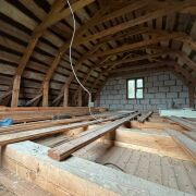 Дом сложен из газосиликатных блоков,. Внутренняя отделка комнат выполнена вагонкой.
