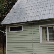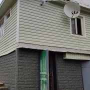 Теплый дом из бруса, ошалеван покрытой и пропитанной вагонкой снаружи и внутри, дополнительно отделан снаружи сайдингом.