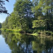 Рядом река Нарочь, лесной массив.