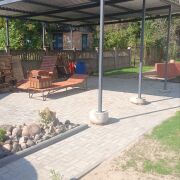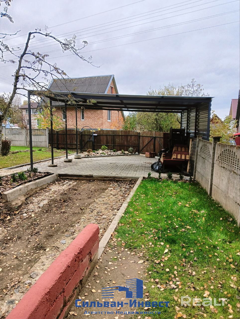 Большой навес для двух машин. Дом продается с фирменной садовой техникой: бензо + электро газонокосилки + триммер; садовой мебелью и всей мебелью в доме. Большой запас дров (береза+дуб).