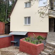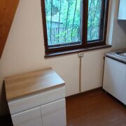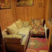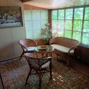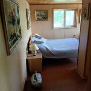 - Остекленная веранда, просторная кухня, жилая комната с камином и небольшая спальня.