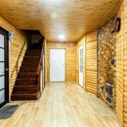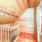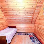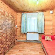 -Все помещения оформлены в тёплых, натуральных тонах, создающих атмосферу комфорта. Натуральная вагонка, аккуратно уложенная по стенам и потолку, визуально расширяет пространство и дарит ощущение тепла даже в холодные месяцы.