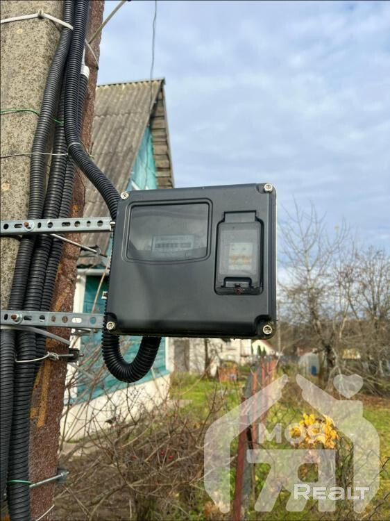 - Есть ворота для заезда автомобиля на участок. Также установлен электрический счётчик на столбе.