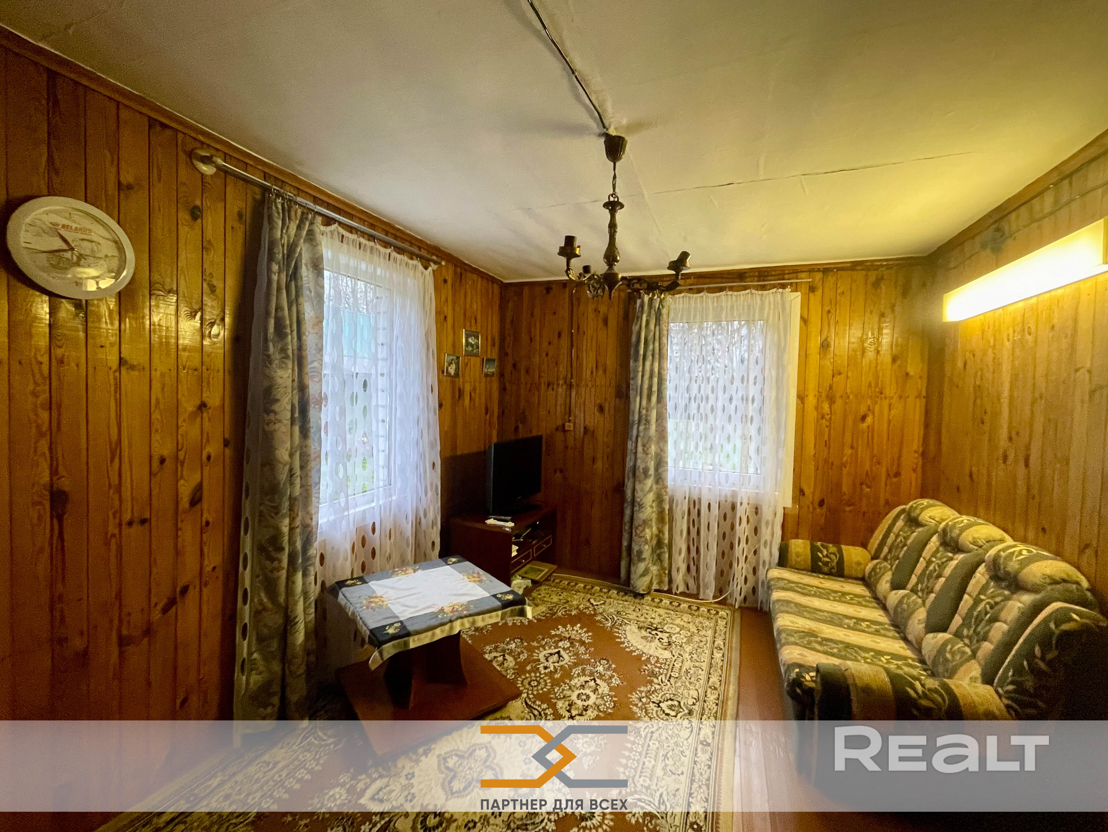 Садовый домик – щитовой, обложенный кирпичом, установлены стеклопакеты, оцинкованные водостоки. Дом хорошо отапливается новой печью. На первом этаже 3 уютные комнаты, обустроена аккуратная кухня имеется зона для отдыха и семейных обедов. Есть и мансардный этаж, на котором возможно обустроить жилую комнату. Дом внутри отделан деревянными панелями и деревянный пол, которые имеют отличную теплоизоляцию, обладают экологичностью, здоровым микроклиматом и создают уют.