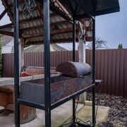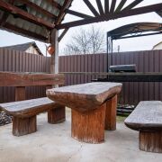 Баня, пруд на участке, хоз. постройки, лес рядом, ландшафтный дизайн, мебель, беседка, сад, камин.