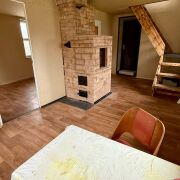 Дом 3-х этажный, утеплен и обложен кирпичом. Обогревается печкой. На первом цокольном этаже расположен гараж. На втором этаже: веранда, кухня и отдельная комната. На третьем этаже -мансарда.