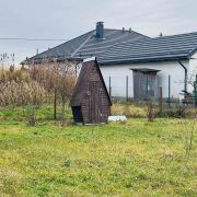 Бетонный забор и металические ворота. Есть уборная на участке. Общая площадь: 54 кв.м.
