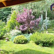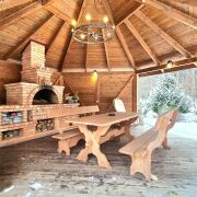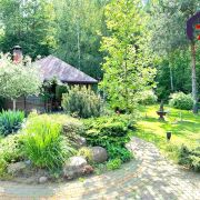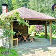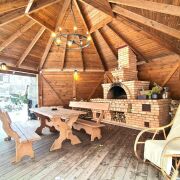 -Среди всего изобилия растений расположена основательная беседка с печью-камином, на которой можно готовить пищу на открытом огне.