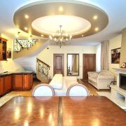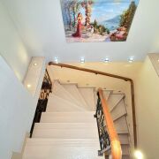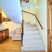 -В доме предусмотрена многозонная подсветка, которая адаптируется под разные временные периоды. Каменная лестница с кованными перилами дополняет монолитность и изящество строения.