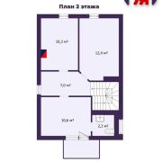 -Общая площадь 121,9 кв.м., жилая - 75,3 кв.м.