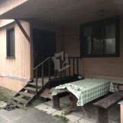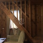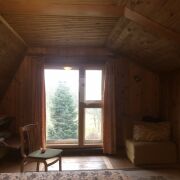 Дом каркасный, внутри отделан натуральным деревом. В доме три комнаты, кухня. Есть просторный гараж.