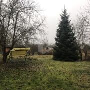 Участок ровный площадью 24 сотки, находится в окружении леса. На участке растут плодовые деревья, кустарники и цветы, выделено место под огород. Земля очень плодородная.