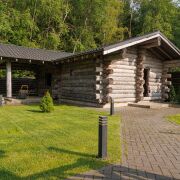 - На участке установлен сруб под баню – Карельскя сосна Кело (Kelo). Бревно обладает рядом уникальных свойств - его не нужно обрабатывать различными химическими составами, красками. Вы получите возможность любоваться натуральной древесной фактурой!