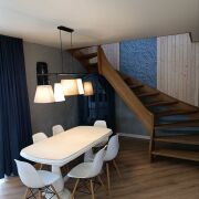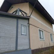 Постройка 2017 года, из силикатных блоков площадью 184 кв. м. и жилой 62.8 кв. м.Коммуникации: отопление – газовое, имеется печь с камином и лежанкой. Крыша – металлочерепица. К дому подведена электролиния 380 В, стабильное энергоснабжение. Мебель из массива дерева, надёжная бытовая техника (варочная поверхность, духовой шкаф, микроволновая печь, посудомоечная машина и холодильник). Вместительные гардеробные на первом и втором этажах. Два совмещённых санузла: на первом этаже с ванной; на втором под чистовую отделку с залитым тёплым полом, заведёнными коммуникациями.