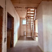 На первом этаже частично (в тамбуре, прихожей, санузле, ванной и частично на кухне) проложен водяной теплый пол. Стены оштукатурены под чистовую отделку, на полу стяжка под чистовые напольные покрытия. Перекрытие между первым и вторым этажом (мансардой), а также между мансардой и чердаком-черновое и черновая лестница. Окна: деревянные стеклопакеты со шпросами, а также деревянные английские мансардные окна. Помещения котельной и подвала облицованы керамической плиткой. В котельной разведены гребенки.