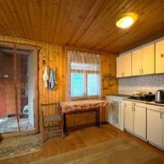 Кухня 15,2 кв.м., большая жилая зона 25,1 кв.м. с установленной добротной печью, разделенная на две комнаты – 15 кв.м. и 10,1 кв.м.
