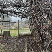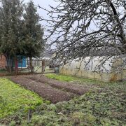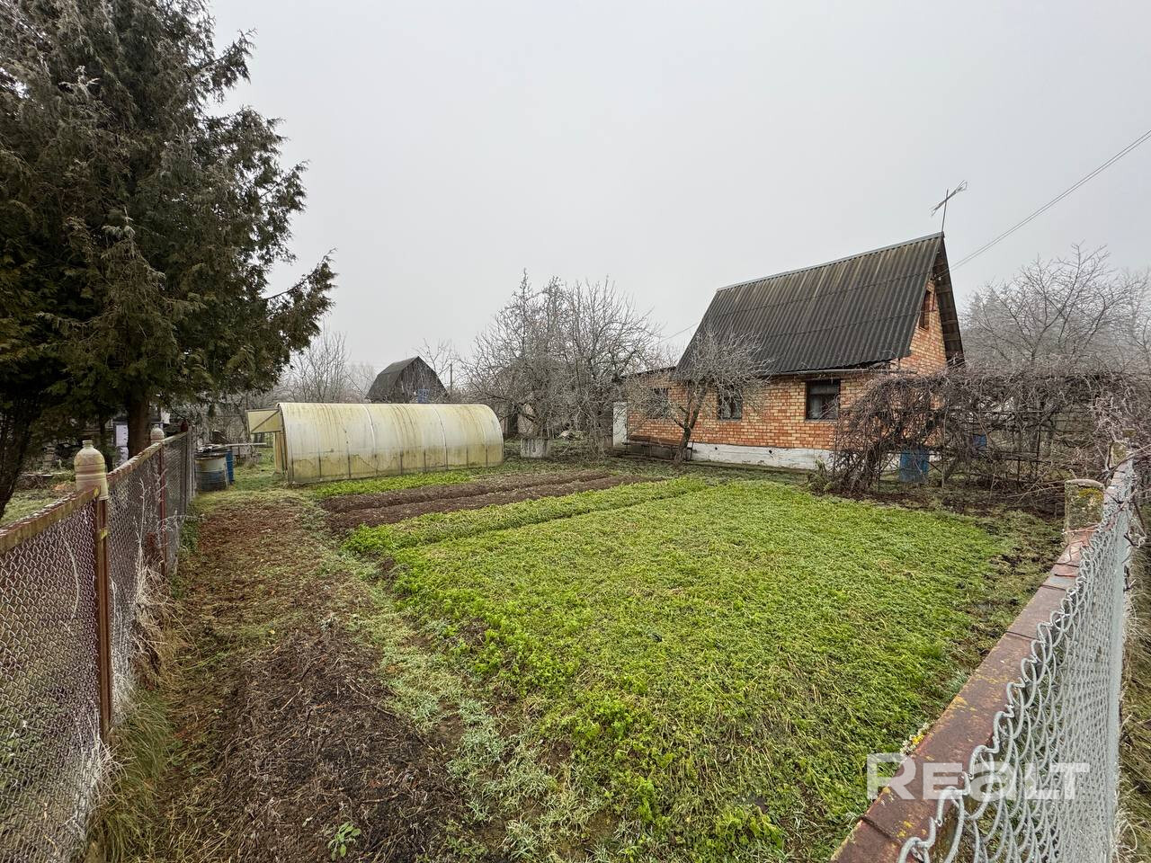 Участок со всех сторон озаборен сеткой рабицей.