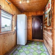 -Ремонт в этом доме выполнен в теплых, натуральных тонах с преобладанием древесины, что создает атмосферу уюта и настоящего загородного уединения. Стены и потолки обшиты вагонкой, придающей помещению эстетичный и аккуратный вид.