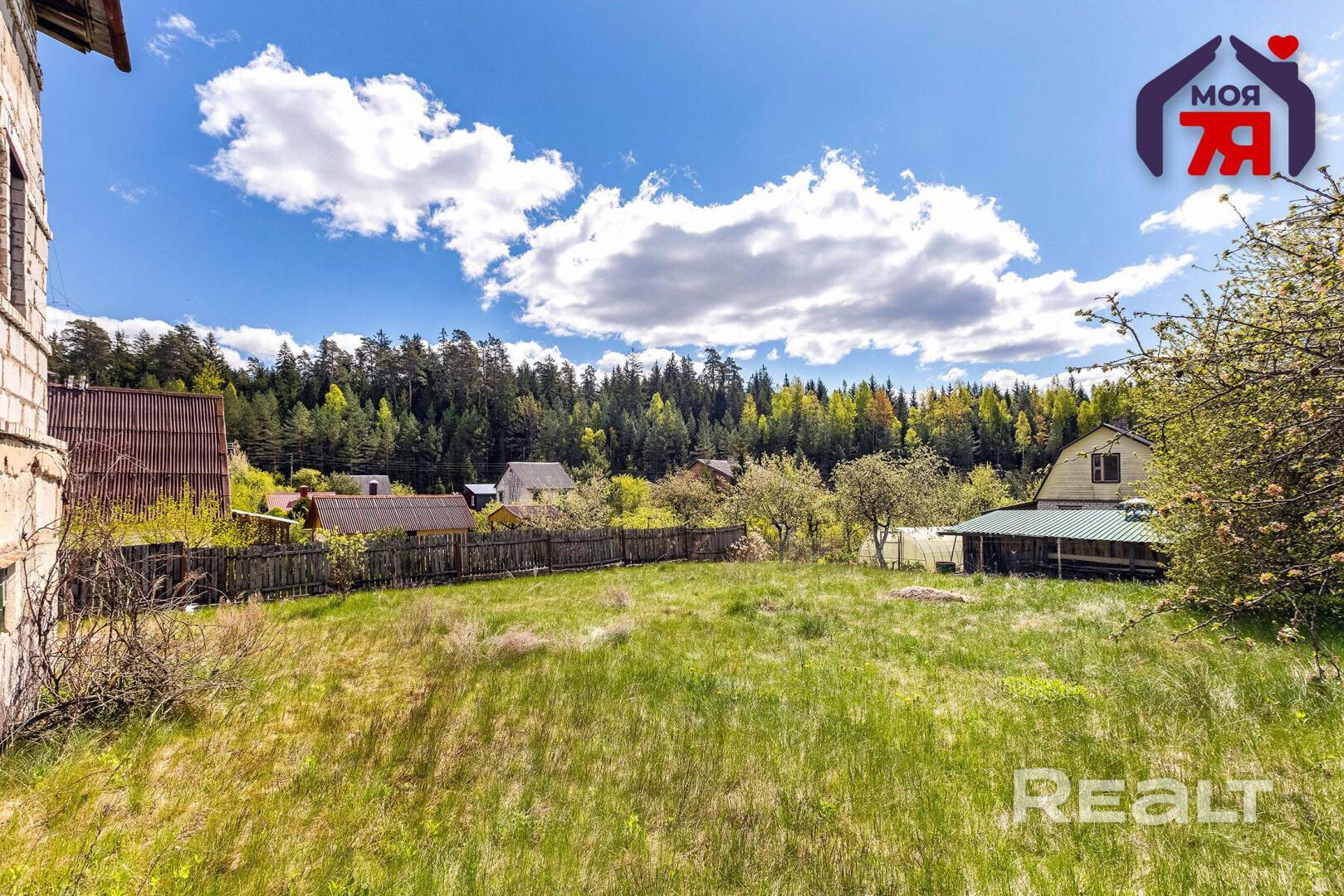 -Дом расположен на участке площадью 6 соток. Легкий наклон рельефа, означает что участок хорошо дренируется после дождей, а с высоты открывается живописный обзор на зелёный ландшафт.