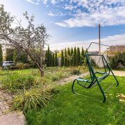 -Участок почти 5 соток, ровный, огороженный и правильной формы. На нём высажены сортовые туи, а аккуратные дорожки вымощены плиткой. Выделено место для грядок, высажены плодовые деревья, кустарники и цветы.