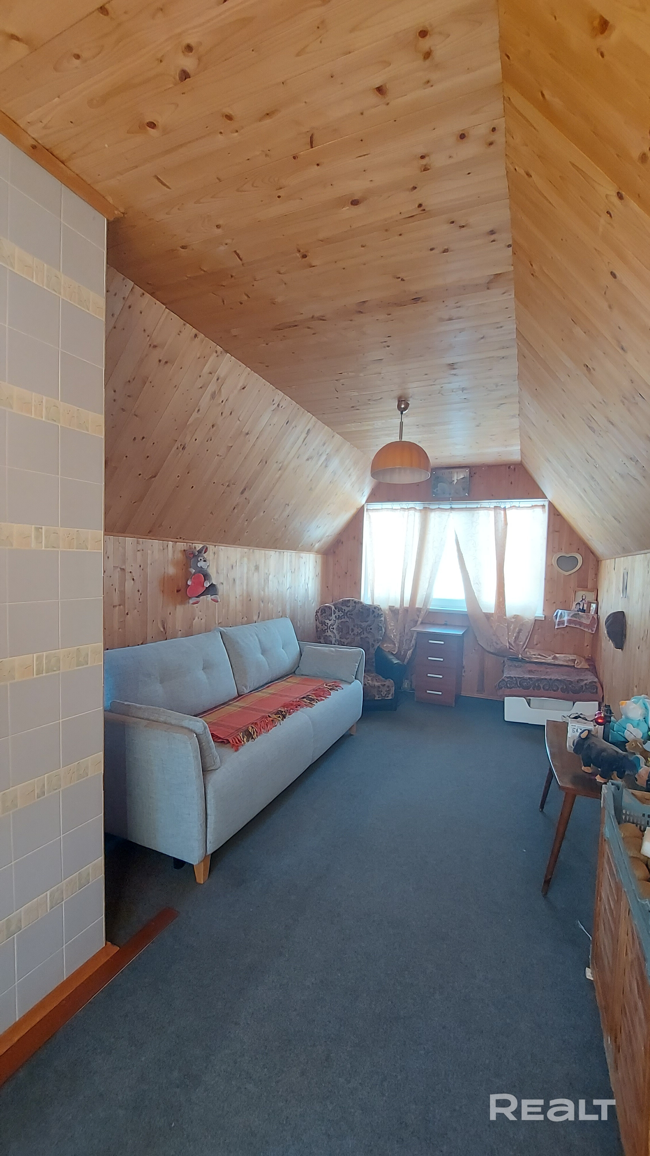 - На первом этаже расположилась кухня и просторная гостиная, веранда и кладовая. На втором этаже просторная жилая комната.