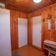 Стены дома выполнены из толстых срубов, внутри отделаны вагонкой.