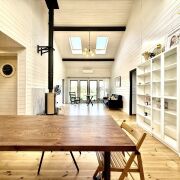 Огромная кухня-гостиная — 40 м2, с окнами в пол и потолком до 6 м. Это пространство, где легко дышится и где собирается вся семья.
