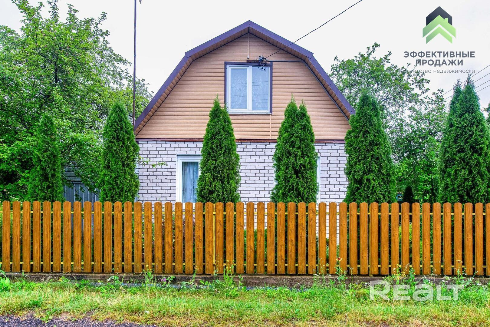 На участке построен двухуровневый деревянный садовый домик 1989 г. постройки. Первый этаж бревенчатый, обшит кирпичом. В домике 3 просторные комнаты общей площадью 60,2 кв.м, в том числе 37,6 кв.м жилой площади. Проходная кухня площадью 11,2 кв.м для приятного приготовления домашней еды, вода заведена в дом. Установлены двухкамерные стеклопакеты. Заменена проводка.