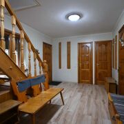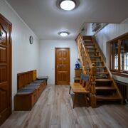 Дом общей площадью 280,9 м2, 3 этажа с удобной планировкой и светлыми комнатами. Стены утеплены, окна — стеклопакеты, отопление — газовое. Отдельно стоящая баня, 2 капитальных гаража. На участке 0,1682 га расположен сад из плодовых деревьев и ягодных кустарников.