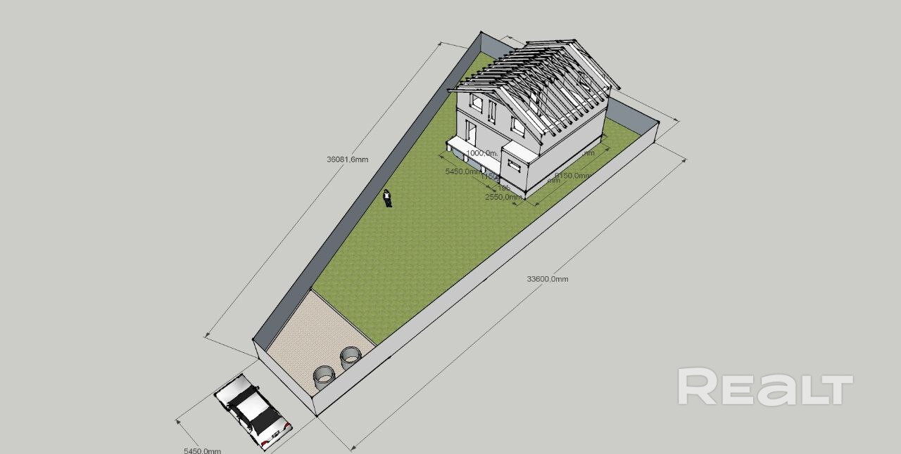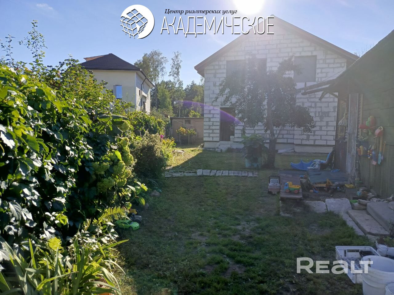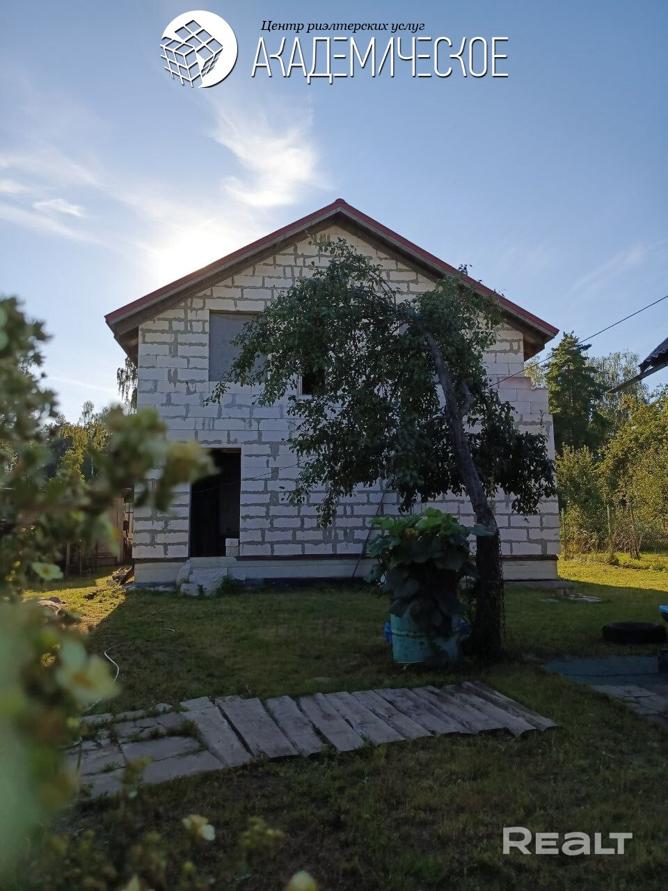 4,04 сотки (в частной собственности) в садовом товариществе «Аэрогеодезист» (Боровая). До участка 1 км от кольцевой автодороги в логойском направлении. На участке расположен временный летний домик 6х4 м., полностью готовый для проживания. Строится двухэтажный коттедж размером 8,1х8,1 м. из газосиликатных блоков толщиной 35 см. На данный момент залит плитный фундамент с ребрами жесткости на песчано-гравийной подушке, возведены стены и перегородки, накрыта крыша из металлочерепицы brateх.
