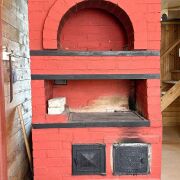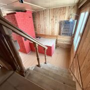 - 1 этаж: просторная комната с печью (и лежанкой) 19.3м2 для уютных вечеров, отдельная кухня (6м2), совмещенный санузел 4м2 (установлен душ).